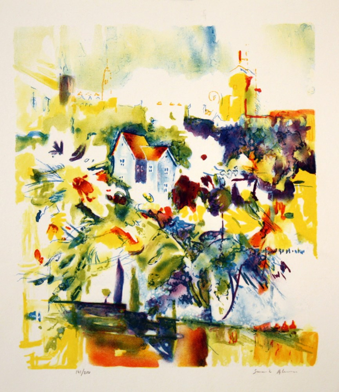 Färgrika målningar, gärna med hus, träd och vatten. Oftast upplevs dem som explosioner med en ljus lätthet i färger och motiv.