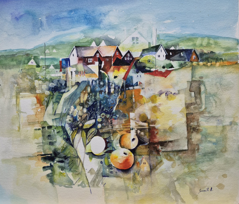 Färgrika målningar, gärna med hus, träd och vatten. Oftast upplevs dem som explosioner med en ljus lätthet i färger och motiv.