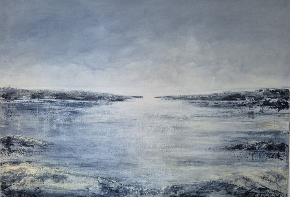 Ett stormigt hav, branta klippor, en solnedgång som speglades i vattnet. Naturens magi när den ser ut som en målning i sig. Allt detta fångas i Marie Sandells målningar. Det är inte ovanligt att den färdiga målningen ser ut som en plats hon har varit på. Det undermedvetna har bestämt sig för att lyfta fram de avgörande ögonblicken på duken.