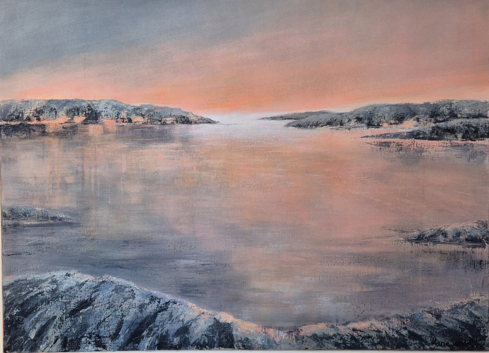 Ett stormigt hav, branta klippor, en solnedgång som speglades i vattnet. Naturens magi när den ser ut som en målning i sig. Allt detta fångas i Marie Sandells målningar. Det är inte ovanligt att den färdiga målningen ser ut som en plats hon har varit på. Det undermedvetna har bestämt sig för att lyfta fram de avgörande ögonblicken på duken.