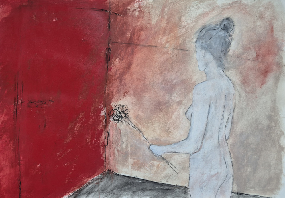 Mina målningar belyser känslor av frihet i en expressiv anda. Kvinnan i mina motiv är någon jag håller varmt om hjärtat och hon söker frid, återhämtning och allmän tankeflykt. Fågeln är oftast jag; skör, skarp, ängslig, sökande och bejakande. Jag vill att mina målningar ska ha ett eget vackert liv utanför det tekniska, stressiga, orättvisa och ytliga liv som levs där ute nu.